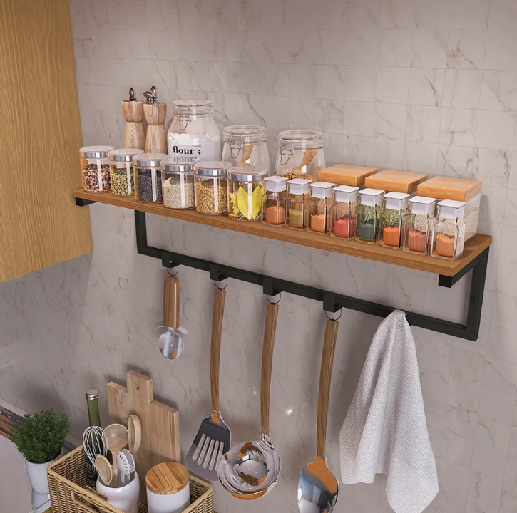 Para quem gosta de praticidade ao sair ou chegar em casa, o Cabideiro de Parede LI042 da Linha Industrial Kappesberg é a solução ideal. Medindo 16cm de altura, 69,5cm de largura e 15cm de profundidade, são cinco suportes, permitindo que você pendure casacos, bolsas, chaves e capéus, facilitando a organização e tornando sua rotina mais completa. Em estrutura metálica, que oferece robustez e durabilidade, o cabideiro é pintado com tinta epóxi na cor branco brilho, garantindo maior durabilidade contra a umidade e um acabamento lindo. Para completar, na parte superior o cabideiro conta com uma prateleira em MDP de 15mm e pintura touch na cor canela, contando com a textura dos veios da madeira e um acabamento lindo. Uma combinação moderna e cheia de estilo para completar o seu espaço e facilitar o seu dia a dia.