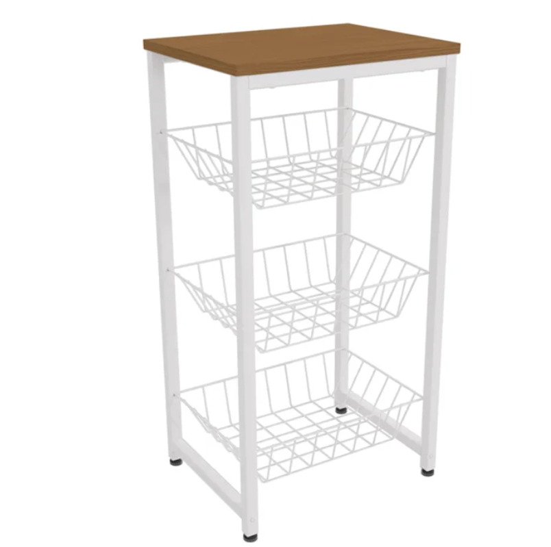 A Fruteira Industrial é a escolha perfeita para quem busca funcionalidade e design moderno na cozinha. Com 3 cestos espaçosos de metal fosco, assim como sua base, ela permite armazenar frutas, legumes e até utensílios de forma organizada e sempre ao alcance das mãos. Conta também com o tampo em MDP 15mm com acabamento em pintura touch, possibilitando suavidade ao toque e um visual sofisticado que combina com diversos estilos de decoração, além disso suporta até 7 kg (assim como os cestos de metal). Este móvel chegará em sua casa separado em 01 volume.