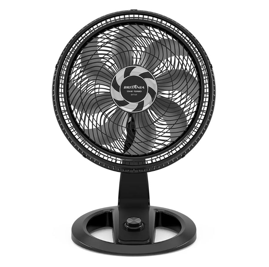 Ventilador Britânia 2 em 1 Maxx Force Silencioso 174W BVT481 para dias com mais frescor! São 174W de potência, 47 cm, 8 pás e a incrível tecnologia Maxx Force, que juntos ampliam a vazão e distribuem o ar de maneira extremamente uniforme no seu ambiente! Com classificação energética A, o Ventilador Britânia é de baixo consumo de energia, garantindo excelente performance. Muito versátil e com grande flexibilidade, o BVT481 possui novo sistema de articulação sem borboleta que permite ajustar entre 3 opções de inclinação vertical e um botão que aciona a oscilação horizontal automática. Além disso, ele é superseguro e conta com grade turbo e sistema de travamento entre a grade frontal e traseira, o que mantém a segurança e evita o contato com a hélice. A base, muito bem projetada, é 2 em 1! Oferece ampla estabilidade ao produto e pode ser usado na mesa, sobre alguma bancada ou como ventilador de parede. Potente e moderno, conte com a excelência do Ventilador Britânia 2 em 1 Maxx Force Silencioso 174W BVT481! • Potência de 174W: maior poder de ventilação • Grade Turbo: Garante maior vazão de ar e excelente desempenho • 3 velocidades: mínimo, média e máxima • Super silencioso • Tecnologia Maxx Force 8: hélices com 8 pás • Grade que obedece às normas de segurança (contato com partes móveis) • Grade removível: fácil de montar, desmontar e limpar • Oscilação horizontal automática com novo sistema de acionamento (botão integrado à carcaça) • 3 opções de oscilações vertical • Novo sistema de articulação para ajuste da inclinação vertical (sem borboleta) • Alça para transportar e Porta-fio • Novo sistema de travamento entre grade frontal e traseira • Alça na grade traseira para transportar o aparelho • Versátil: pode ser utilizado na mesa ou na parede.